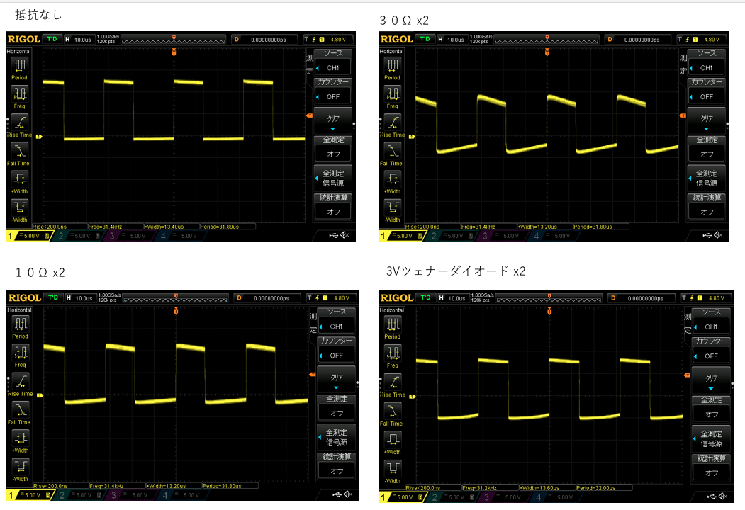抵抗、ツェナー共に満足した結果は得られませんでした。