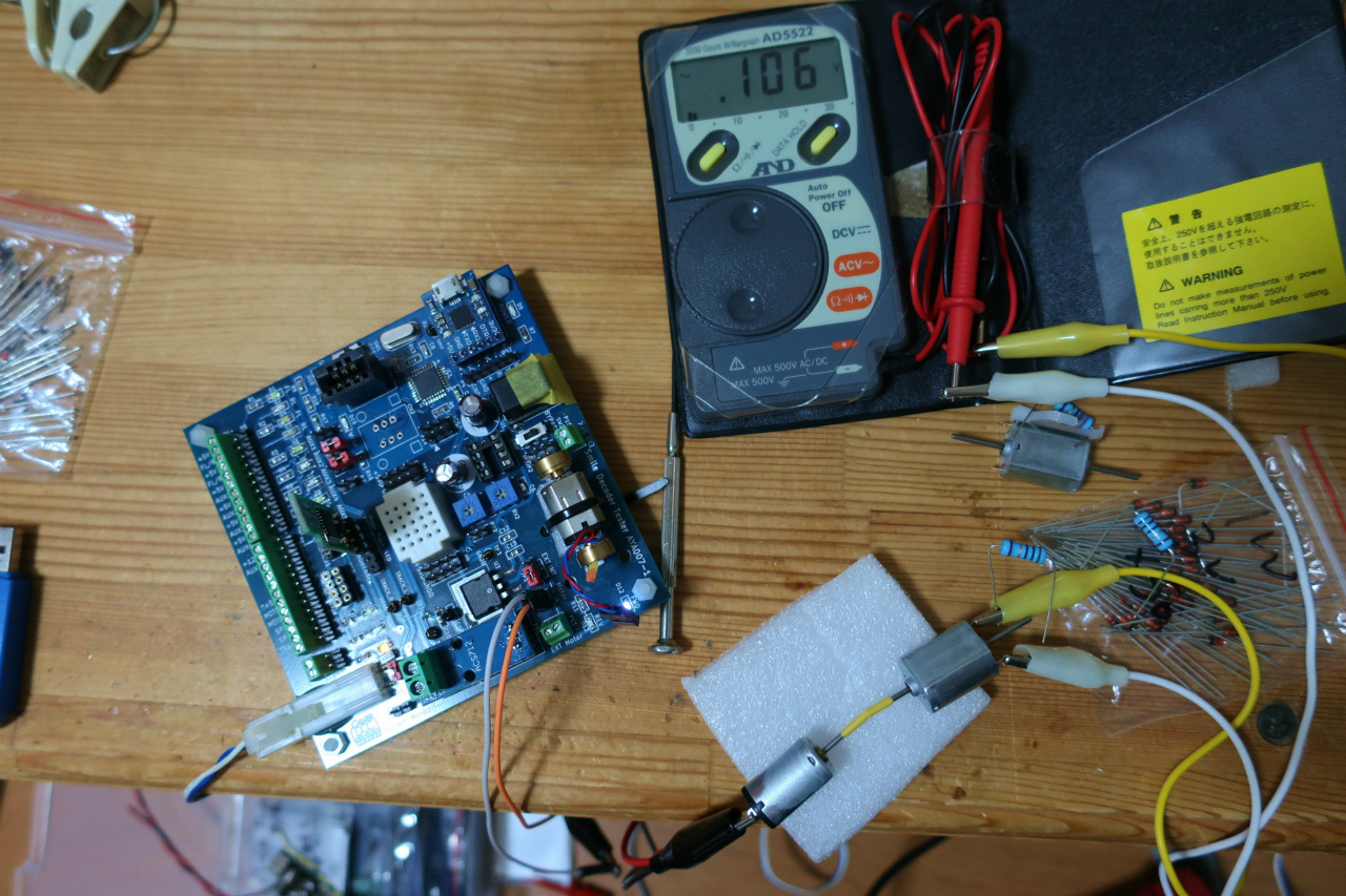 あと、ロータリーエンコーダーをモーター軸に接続して、回転数も見られると更に面白そうです(^^;