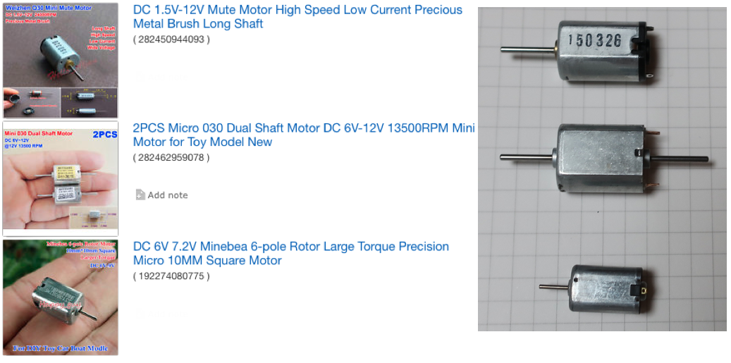 12Vのモーターで、低転圧から回って、12V印可時の回転数が低いモーターが適しています。