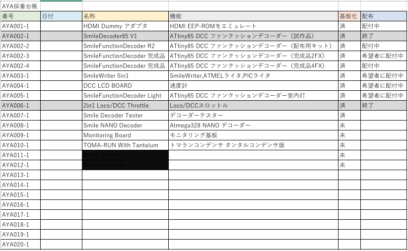 また、AYAシリーズの基板で部品が無くて配布止めているSmileWriter 5in1や