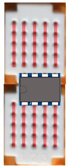 電極は上の写真で言うと縦方向が同一電位になるので、ICの1-4と5-8がショートに